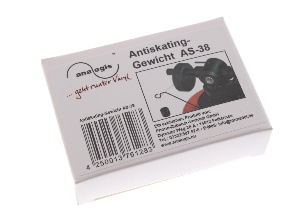 The Analogis AS-38 anti-skating weight is an essential replacement component for turntables that use a hanging weight anti-skating system. It is designed to provide accurate skating force compensation, helping balance stylus pressure evenly on both groove walls during playback.
