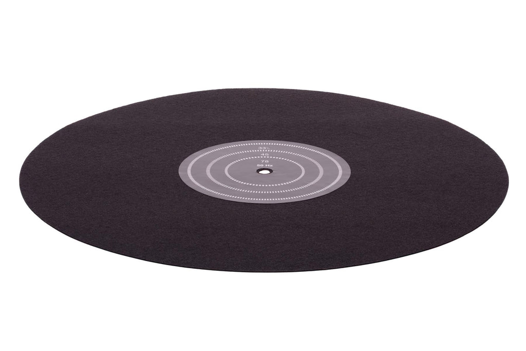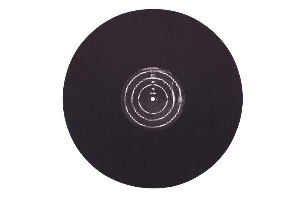 Made from pure felt without chemical additives, this turntable mat naturally emphasizes bass and midrange frequencies, contributing to a warm and rounded sound profile. Integrated into the record label area is a stroboscope disc, allowing visual speed control for 33, 45, and 78 rpm when used with 50 Hz or 60 Hz strobe lamps.