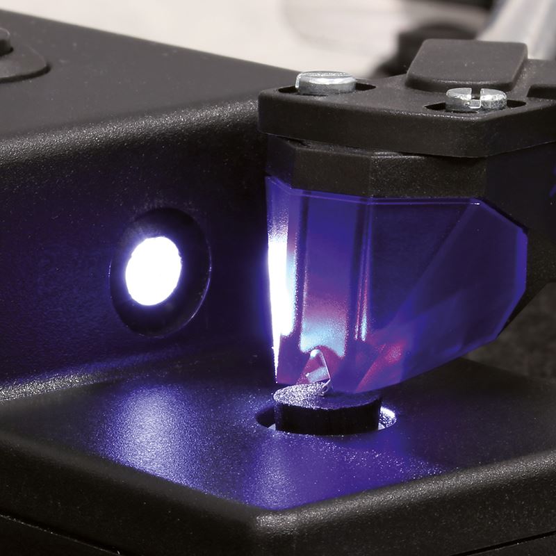 An integrated LED indicates operation, and the compact design makes the cleaner suitable for use with any turntable. Regular use helps protect the cartridge, reduce record wear, and maintain consistent audio performance.
